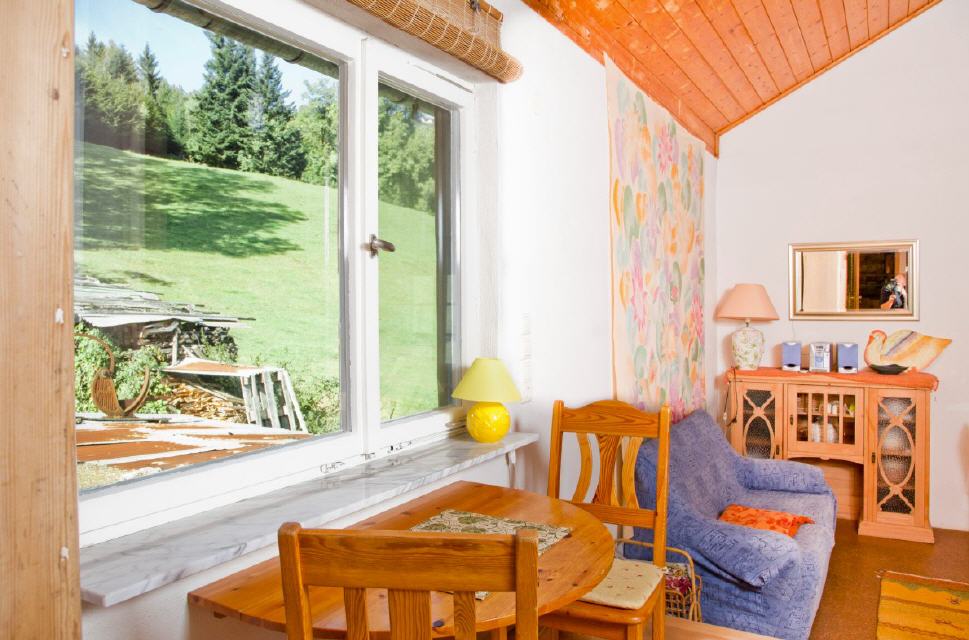 Sich Ruhe gönnen... bei uns im liebevoll baubiologisch restaurierten, über 200 Jahre alten Natursteinhaus mit hellen 2-Etagen-Wohnungen, den Balkonen, Vollholzküchen, Kork- und Holzparkettböden. Idyllisch am Südhangwaldrand gelegen ist es perfekt für Wanderungen vor Ort, zum Entspannen am Teich, der Feuerstelle (mit Schafen und Katze) dem Spielplatz, Rutsche, Schaukel und großem Trampolin. Hier bieten wir 2 Ferienwohnungen. Sie liegen in unserem Haus (unsere Wohnung ist im Erdgeschoss). Die "kleine Wohnung" liegt im ersten Stock und die "große Wohnung" im zweiten (ausgebauter Dachstuhl). Sie sind selbstverständlich komplett eingerichtet.