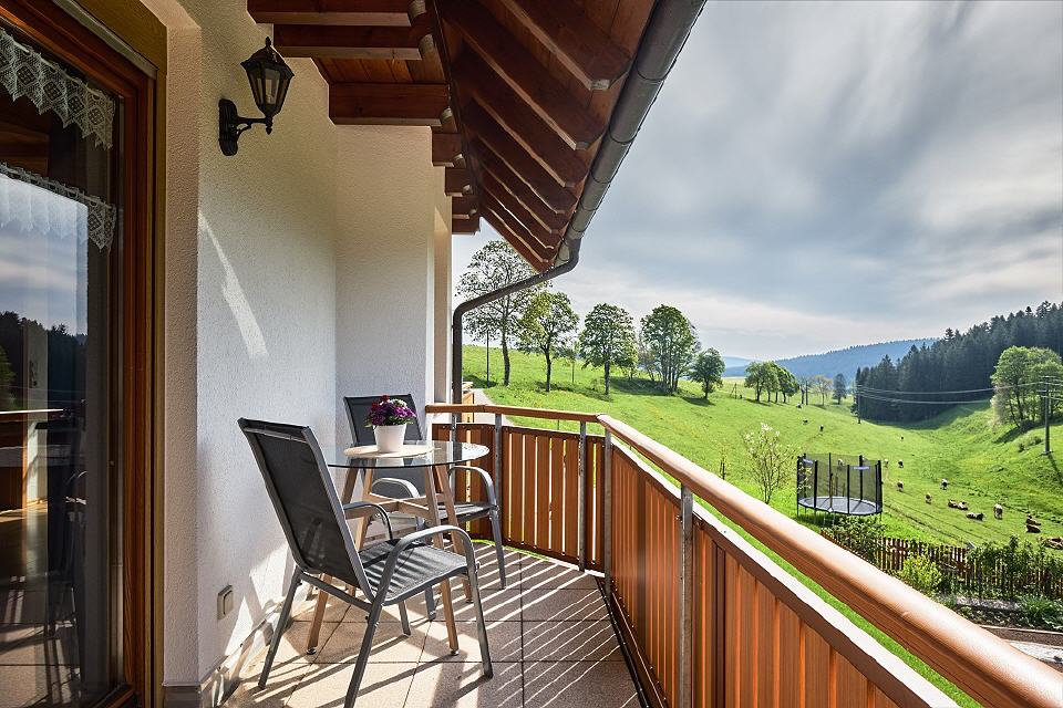 Hier in dieser einmalig schönen Landschaft bieten wir Gästen zwei wunderschöne, modern und komfortabel eingerichtete Ferienwohnungen. Sie befinden sich im neuen Gästehaus und liegen auf jeweils zwei Etagen. Jede Ferienwohnung mit ihren vier Zimmern ist nach Süden ausgerichtet. Von den Balkonen genießen Sie einen herrlichen Blick auf die Schwarzwaldberge und das Tal.
