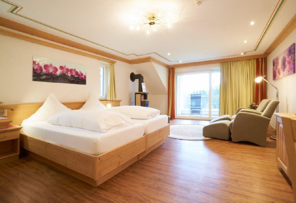 im Haupthaus (Einzelzimmer, Komfort Doppelzimmer auf Wunsch mit Balkon oder unsere Doppelzimmer Superior -45 qm mit Balkon und Blick ins Tal, Familienzimmer, Juniorsuite und rollstuhlgerechte Zimmer) im Gutshof (Komfort- oder Superior Doppelzimmer, Juniorsuite und Komfort-Appartements mit getrennten Wohn- und Schlafraum mit Balkon)