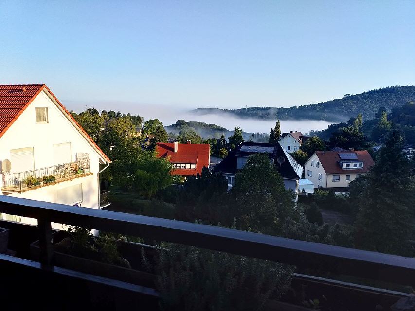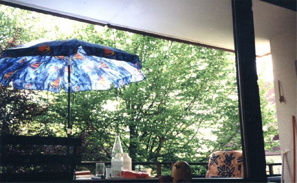 Auf einem schönen, ebenen Weg durch den Schlosspark erreicht man das Haus im Hebelweg vor dem Hotel „Burgblick“ oder vom Parkplatz West das vierte Haus in der Einbahnstraße Hebelweg. Die Ruhe Badenweilers, eines Kurortes ohne Durchgangsverkehr, schlägt sich auf dem Balkon und im Garten im Genuss des Vogelgezwitschers nieder. Der Balkon ist mit Tisch und Stühlen ausgestattet. Der Balkon im Hebelweg ist überdacht, so dass selbst ein kleiner Regenschauer den Genuss nicht einschränken kann. Die Sicht und die schönen Abendstimmungen verführen einfach zum Träumen.