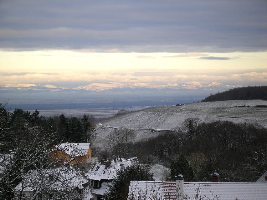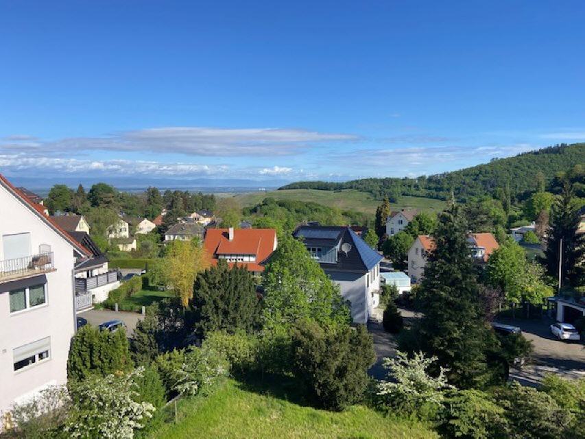 Genießen Sie den Blick vom überdachten Balkon der komfortablen Zwei-Zimmer-Ferienwohnung. Er führt weit hinaus ins Land, bei sonnigem Wetter sogar bis zu den Vogesen hinter dem Oberrheintal. Immer aber auf die Rebhänge des Römerberges, auf gepflegte Wälder und auf die nachts beleuchtete Ruine der Burg Baden.