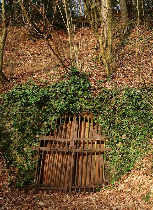 Station 1: Lange Stollen und tiefe Schächte. Nach jahrzehntelangem Bergbau sind die Flanken des Kandel von zahlreichen Hohlräumen durchzogen. Die Arbeit der Bergleute fand unter Tage statt, tief im Inneren der steilen Berghänge. Die Spuren sind noch heute sichtbar. Der Fahrer eines Unimogs hatte großes Glück, als unter ihm die Erde einbrach und ein Tagesbruch sich auftat. Das am Fahrzeug montierte Forstgerät verhakte sich am Rand der Grube und verhinderte Schlimmeres. Der ausgebesserte Asphalt erinnert noch heute an diesen Bergschaden. Oberhalb davon fällt eine Schachtpinge auf. Entstanden ist sie durch das Einstürzen eines 100 m tiefen Bergbauschachtes.