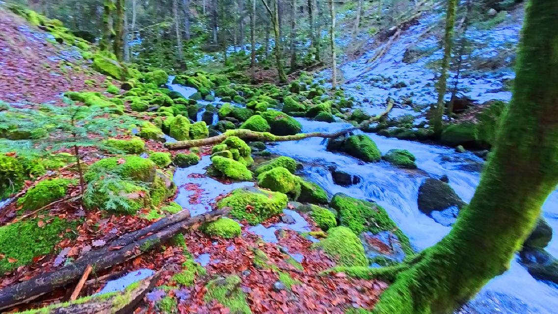 Das Video oben führt durch die Teichschlucht westlich von Gütenbach im Schwarzwald. Bild antippen und genießen!