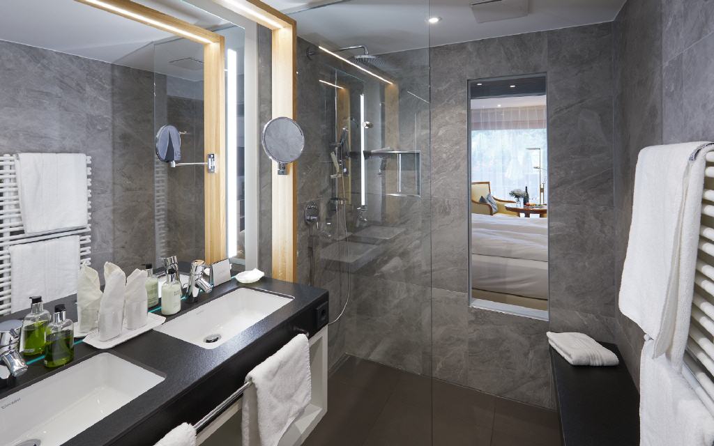 Unsere Zimmer und Suiten bestechen durch ihr stilsicheres Design und ihre großzügige Ausstattung mit vielen hochwertigen Verwöhn-Extras. Der gekonnte Mix aus exquisiten Materialien und warmen Farben verleihen dem Interieur harmonische Behaglichkeit. Die geschmackvolle Einrichtung strahlt ein edles und zugleich warmes Flair aus.
