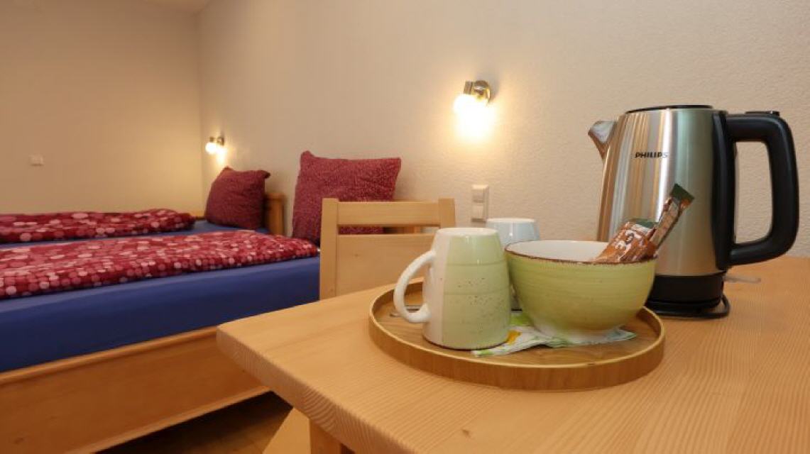 Komfortables Gästezimmer: Bist Du auf Schusters Rappen unterwegs? Als Gastgeber am Schluchtensteig sind unsere Gästezimmer ab einer Nacht zu buchen. Die komfortablen Zimmer sind mit WC und Dusche ausgestattet und haben jeweils ein Doppelbett. Auf Wunsch kann ein Kinderbett zugestellt werden. Da die Gästezimmer in der Hauptsaison oft belegt sind, empfiehlt es sich, im Voraus zu reservieren. Ein Abendessen oder ein Frühstück kann ebenfalls gebucht werden (ab 2 Personen).
